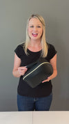 Presenting an exclusive cosmetic set from a Wink & a Nod. Crafted from Luxe Vegan Leather, this unique trio is designed to keep your essentials organized and easy to find. Thanks to a clever zipper design, each bag expands flat, giving you a full view of your cosmetics without the usual digging around. Fully lined with a protective, wipe-clean material, they’re ready to handle spills and messes with ease. Plus, multiple pockets inside keep everything from brushes to lipsticks in their place. Whether at home or on the go, these bags bring playful practicality to your beauty collection.